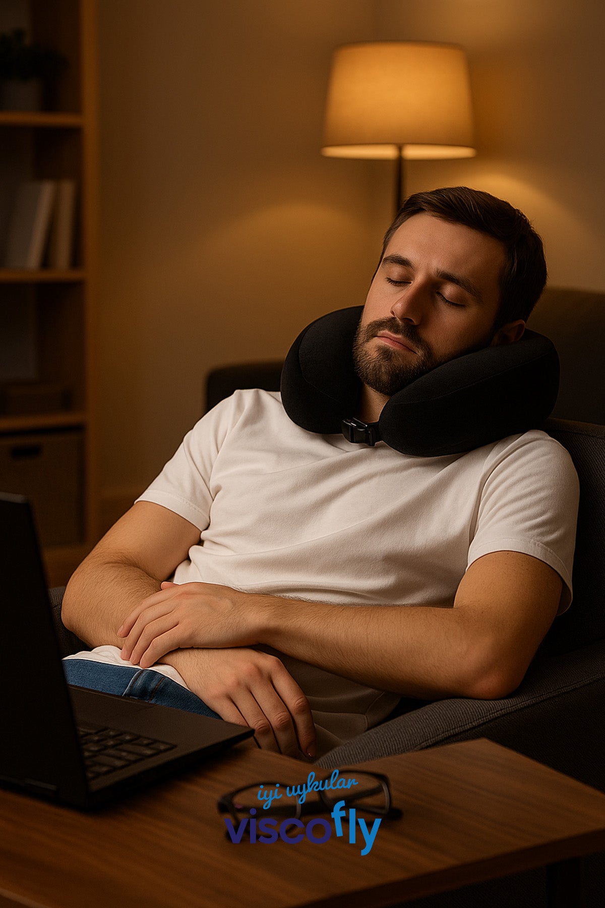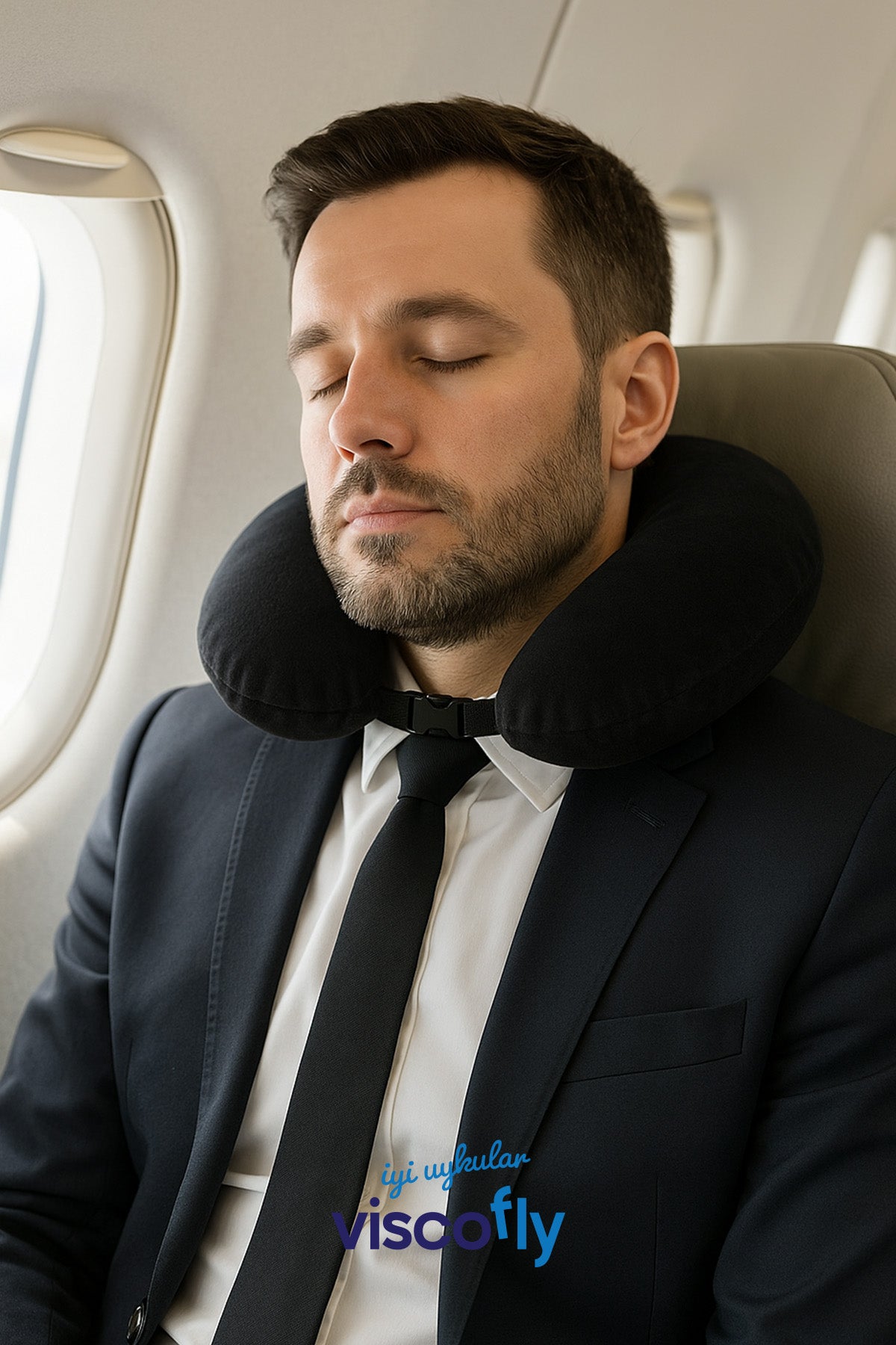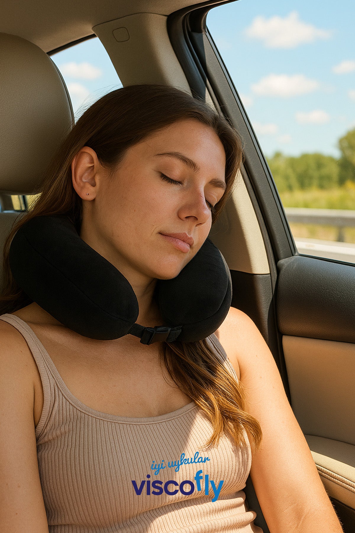 Visko elastik yapısı boynunuzu sarar, U formu ve ön klipsiyle sabit tutar. Uçak, otobüs, araba—her yolculukta rahat.