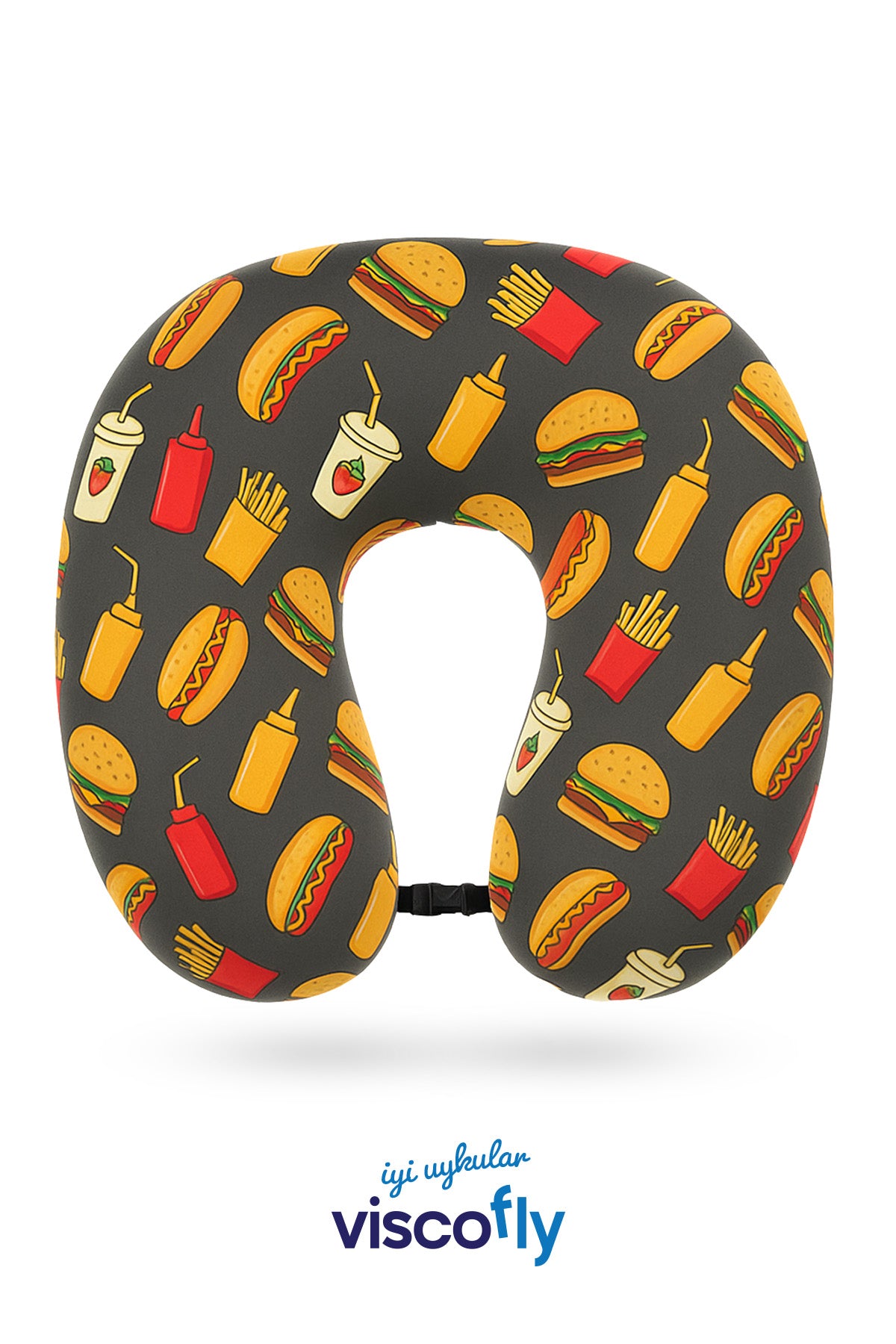Visco Fly - Visco Seyahat Yastığı- Boyun Yastığı - 30*30*10 cm-% 100 Visco Dolgu-Kadife - Hamburger Desen