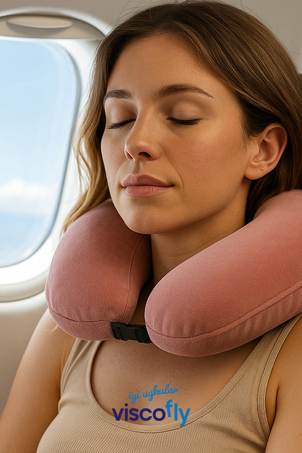 Uçak yolculuklarında: Boyun ve baş desteği sağlar, başın öne veya yana düşmesini engeller.