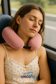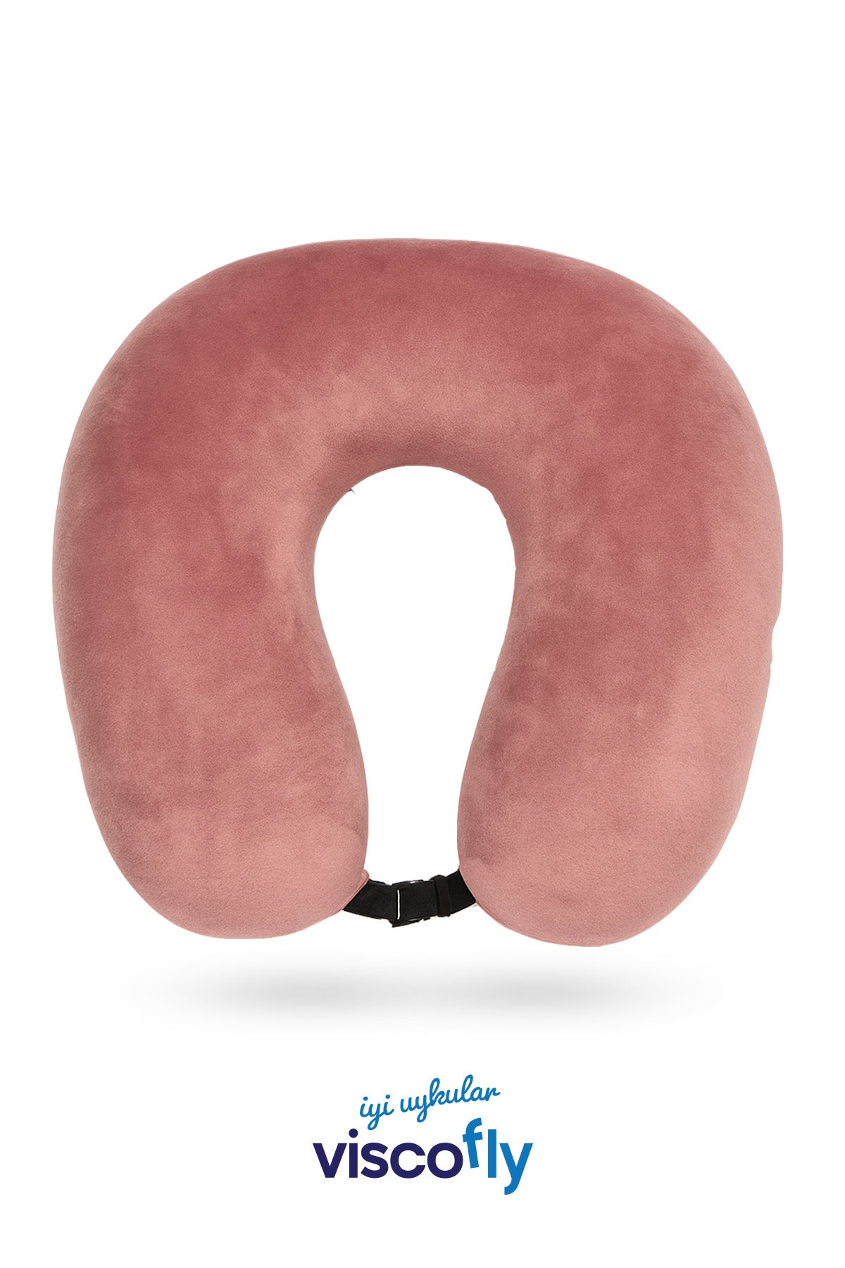 Visco Fly - Visco Seyahat Yastığı- Boyun Yastığı - 30*30*10 cm-% 100 Visco Dolgu-Kadife - Pudra
