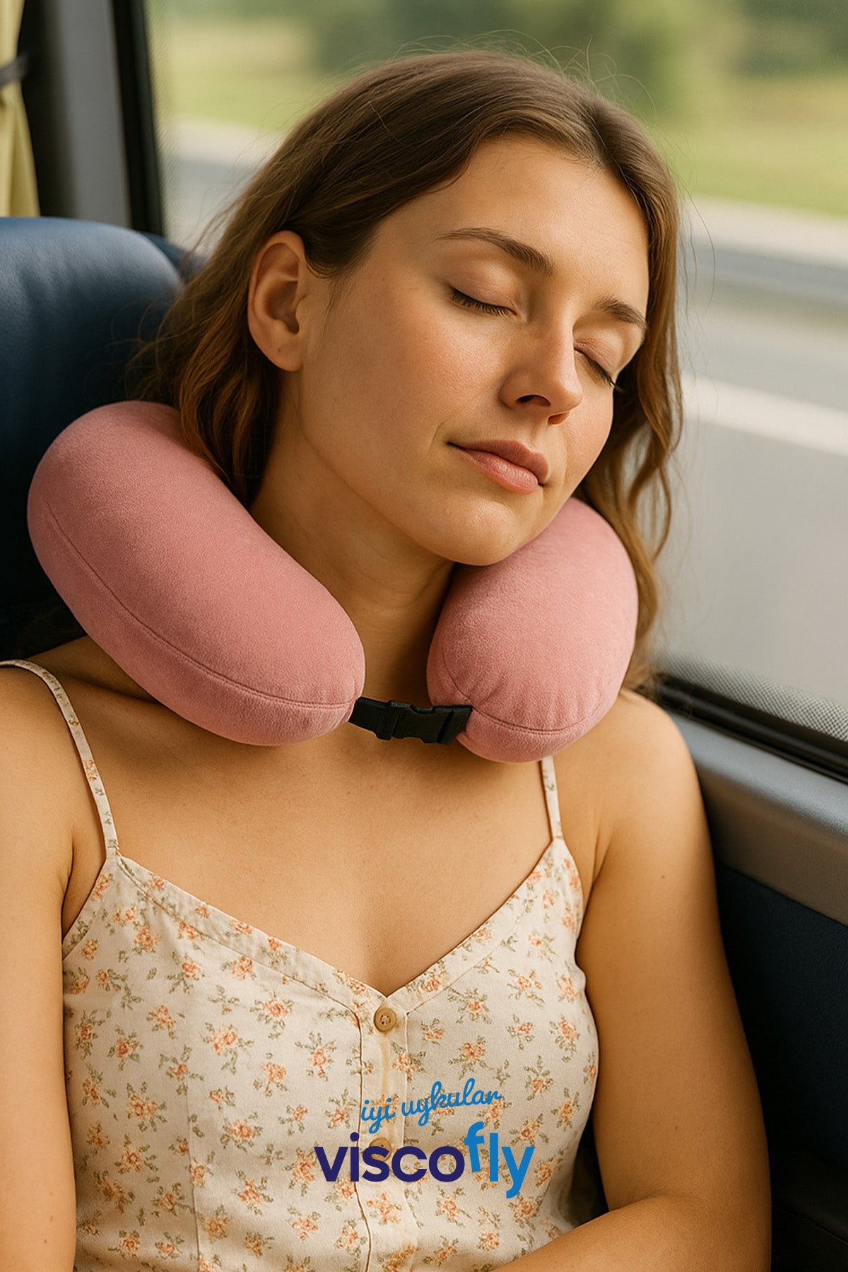 Evet. U-şekilli ergonomik formu sayesinde boynu tamamen sarar, başın öne ya da yana düşmesini engeller. Uzun uçuşlar, otobüs veya tren yolculuklarında konforlu bir uyku sağlar. Seyahat boyunca boyun desteği sunarak yorgunluğu azaltır ve dinlenmiş şekilde varmanızı sağlar.