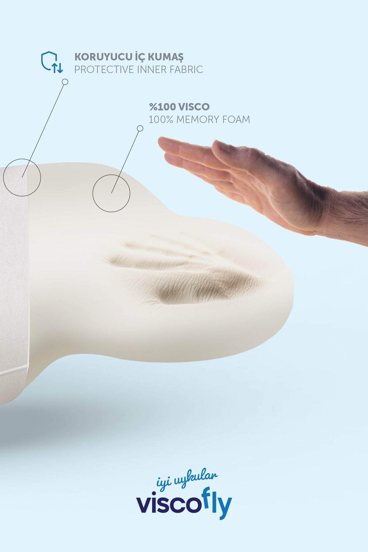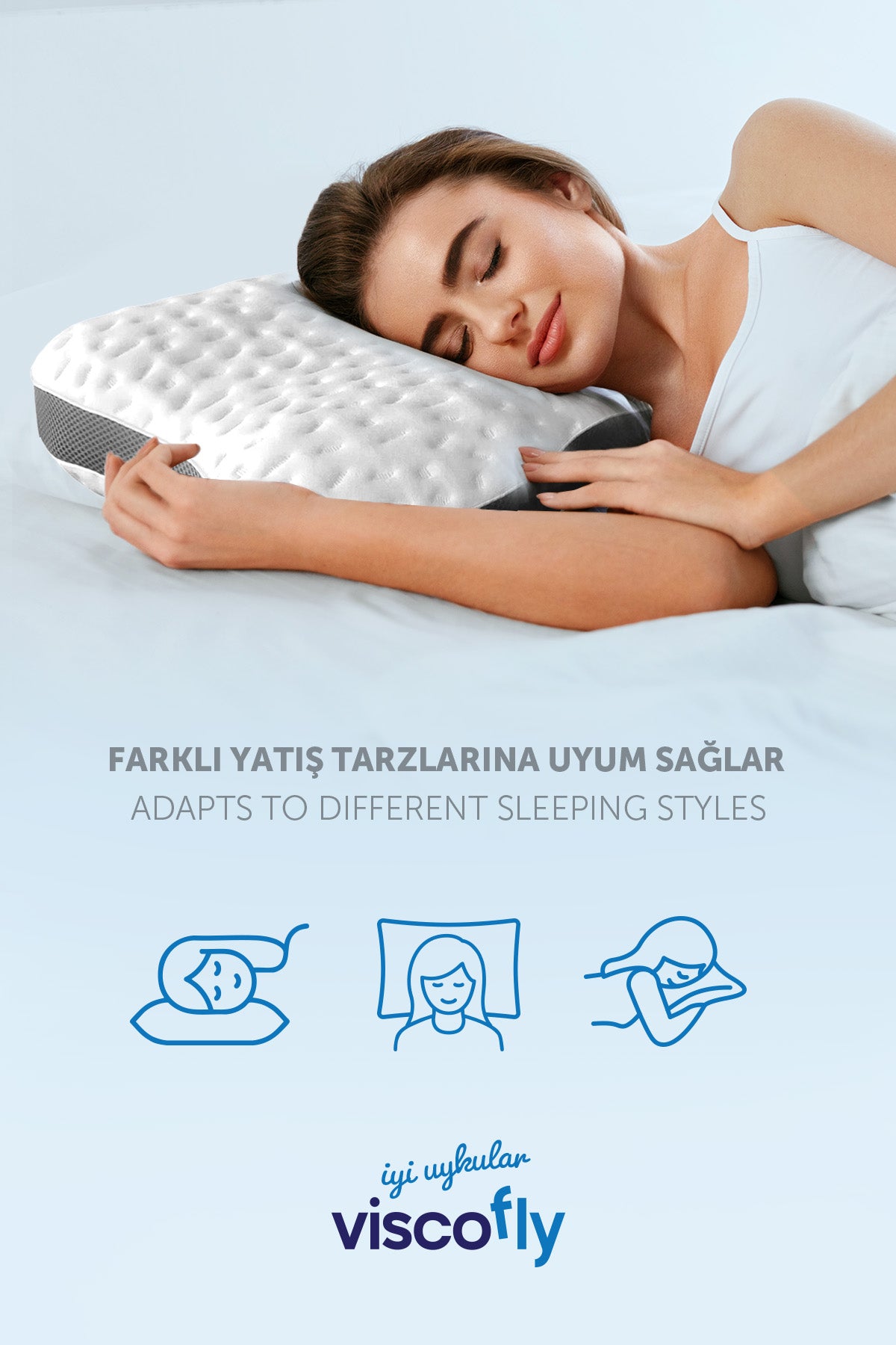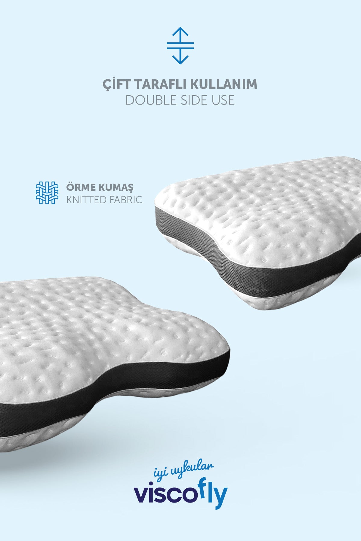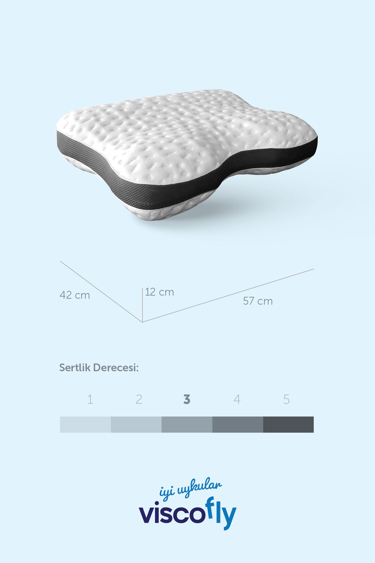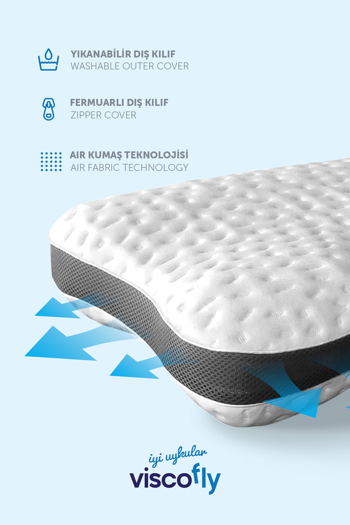 Viscofly Ortopedik Horlama Azaltıcı Visco Yastık – %100 Hafızalı Sünger, Ergonomik Boyun Desteği, Air File Yan Kumaşlı