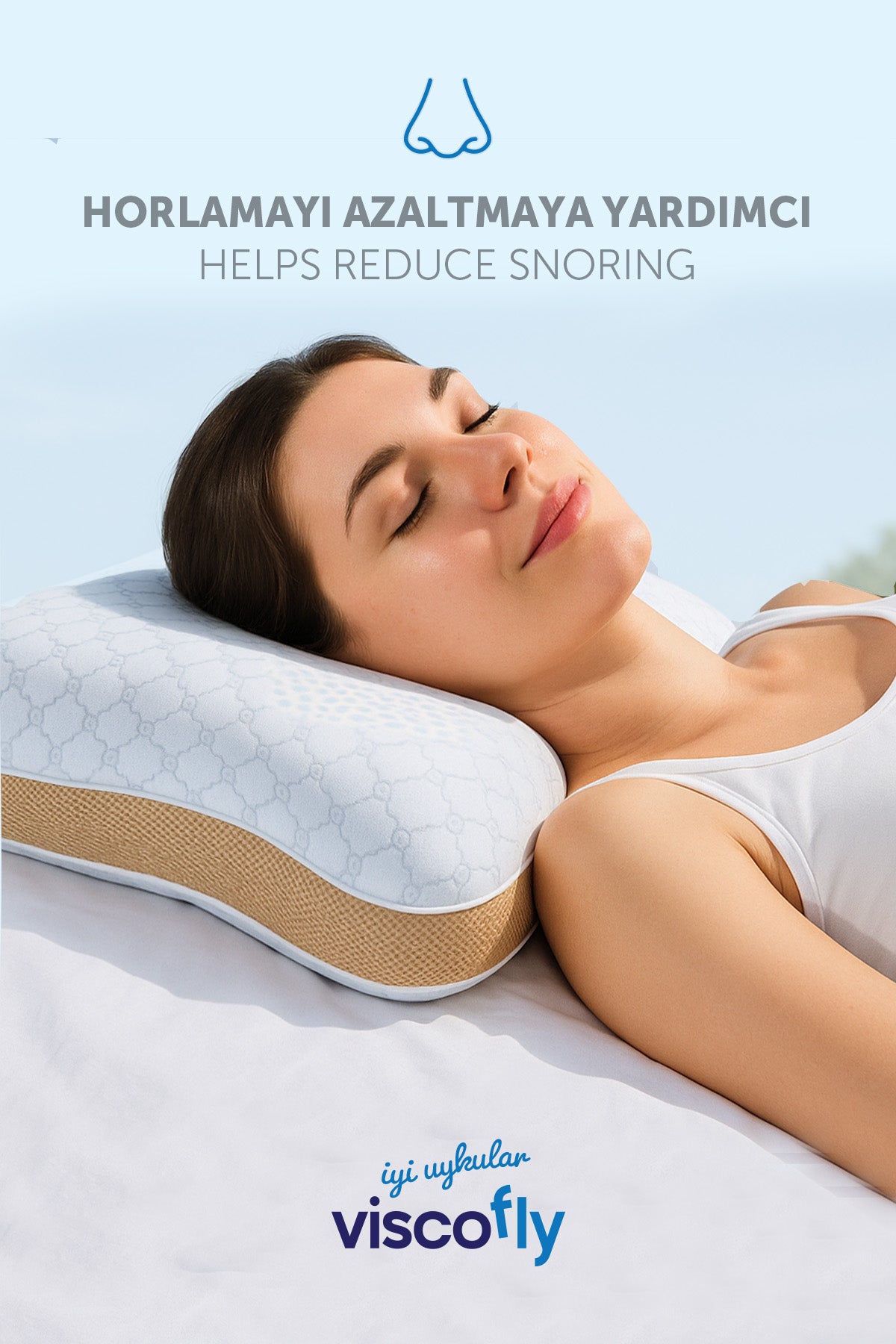Uyku kalitesini artırmak isteyenler için özel tasarlanan Soğuk kumaşlı horlama azaltıcı yastık, yenilikçi visco teknolojisi ve serinletici kumaşıyla konforlu bir uyku deneyimi sunar.